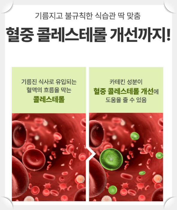 단순히 체지방 감소뿐만 아니라, 항산화 효과와 혈중 콜레스테롤 개선에도 도움을 주는 다이어트녹차 성분이 들어 있어요.